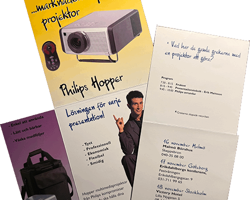 Vi gjorde en serie föreläsningar för hur man kunde använda den då rätt nya projektorn då man presenterade. Skepsisen var inledningsvis stor. Varför byta ut OH-projektorn som fungerade så bra?…