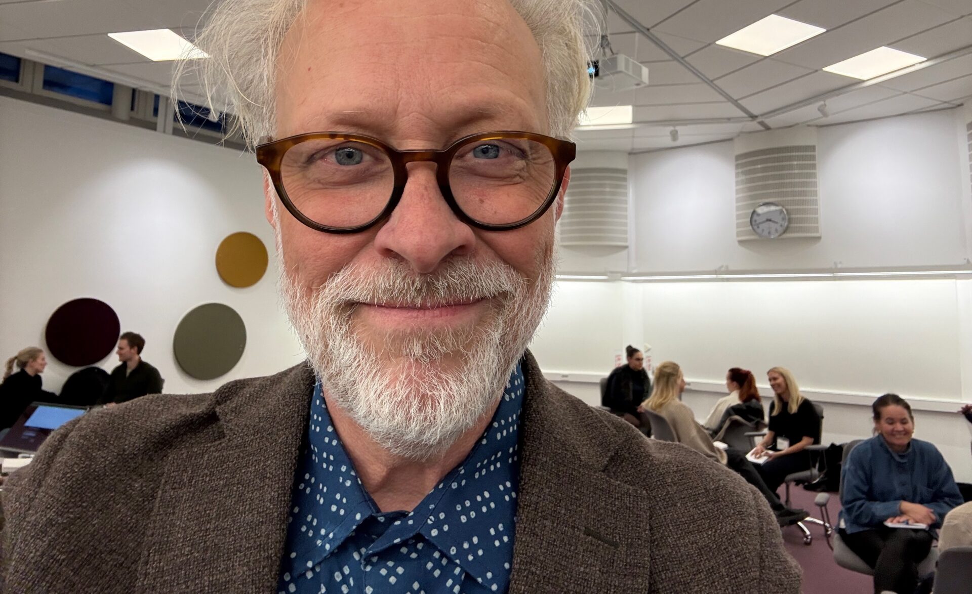 ”Som utbildare är det här det roligaste jag vet: att se hur små, medvetna repetitioner förvandlar “jag vet” till “jag gör”. När det händer ökar tryggheten, trovärdigheten och publikkontakten — på riktigt”, säger Erik Mattsson. Bilden är från programmet ”Ledare och chef” i regi av Stockholm School of Economics Executive Education, där vi gör två inslag på temat ”Fånga din publik”, en viktig ledarfärdighet. Tack Johan Nordlund för förtroendet!